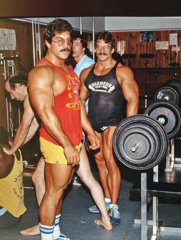 Mentzer and his brother Ray, Gold’s Gym Venice, 1979. Two careers built on the same philosophy.